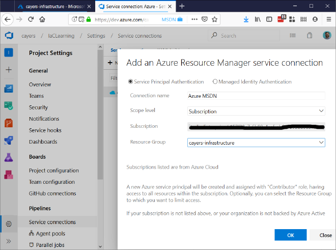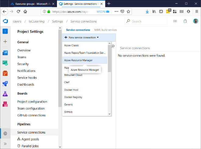 We’ll create a new Azure Resource Manager service connection.