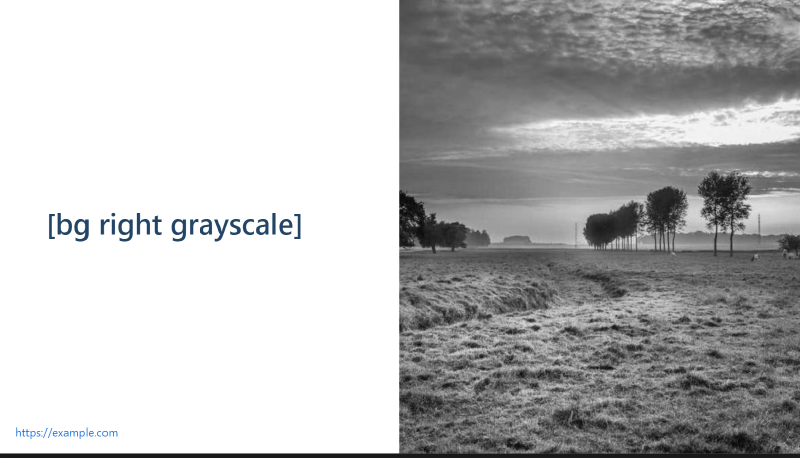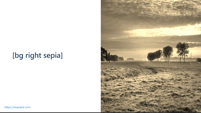 Adding custom backgrounds and images can make your presentation more engaging and visually appealing. To add a background image to a specific slide, use the following syntax: