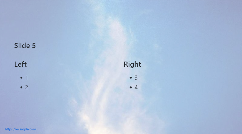 </div>In this example, I’m adding a grid layout to my slides so I have have split columns. You can add any CSS you want here.