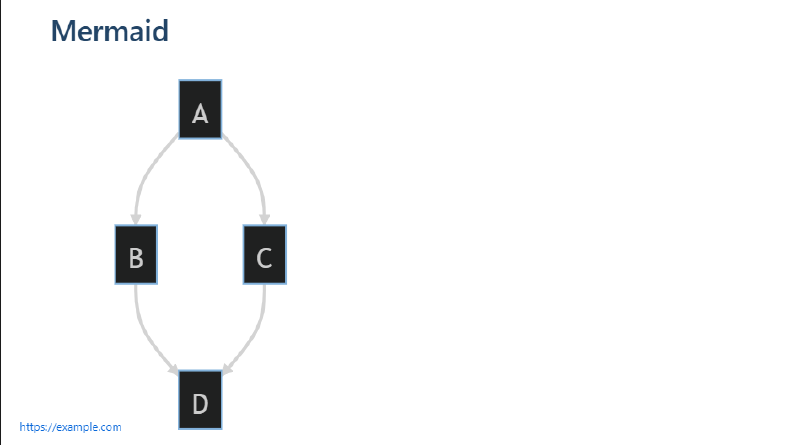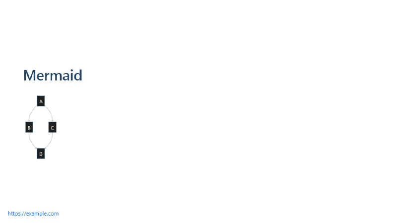 Marp also supports Mermaid, a JavaScript library for generating diagrams and flowcharts from text. Mermaid provides an easy way to create visual representations of complex ideas and concepts, and it integrates seamlessly with Markdown syntax.