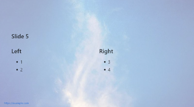 </div>In this example, I’m adding a grid layout to my slides so I have have split columns. You can add any CSS you want here.