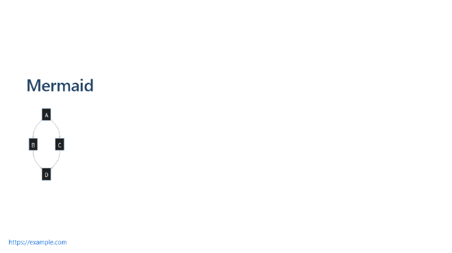 Marp also supports Mermaid, a JavaScript library for generating diagrams and flowcharts from text. Mermaid provides an easy way to create visual representations of complex ideas and concepts, and it integrates seamlessly with Markdown syntax.