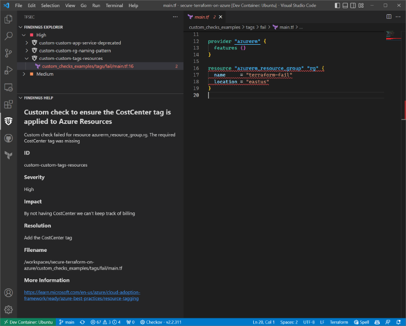 In this post, we will take a look at how to create a few different custom rules. The first rule we’ll work on is for a required tag for our Azure resources. There is an example of this in the tfsec documentation, but its for AWS.
