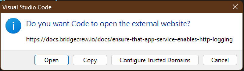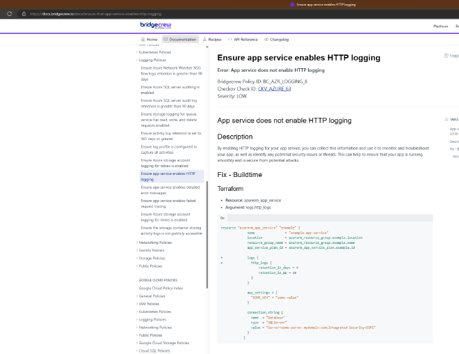 If you click on the check, you’ll get a pop-up and follow the link to the Checkov documentation.